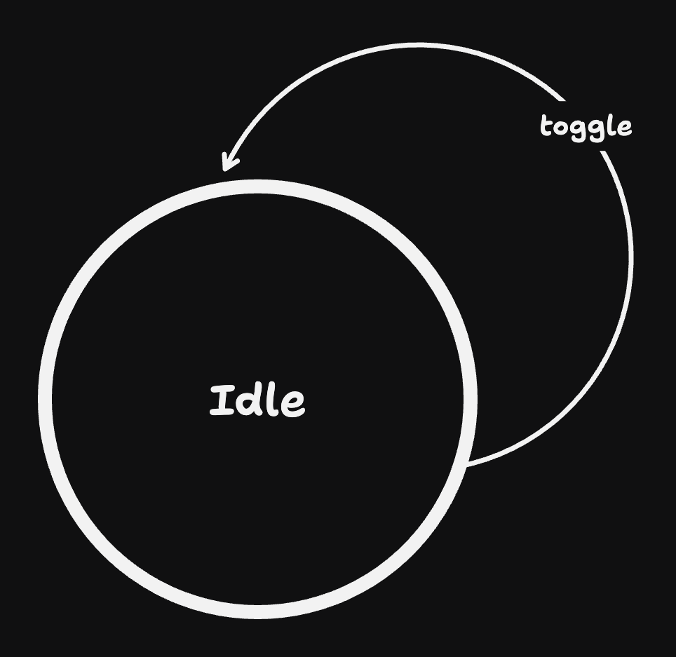 });From the "Idle" state we intercept the "toggle" event and transition to the same state using target:
